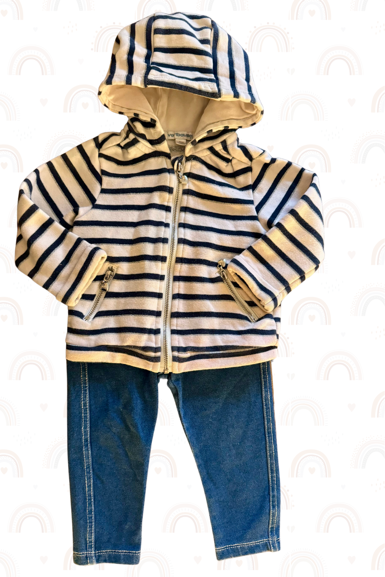 Gilet à capuche + legging jean + tshirt manches longues