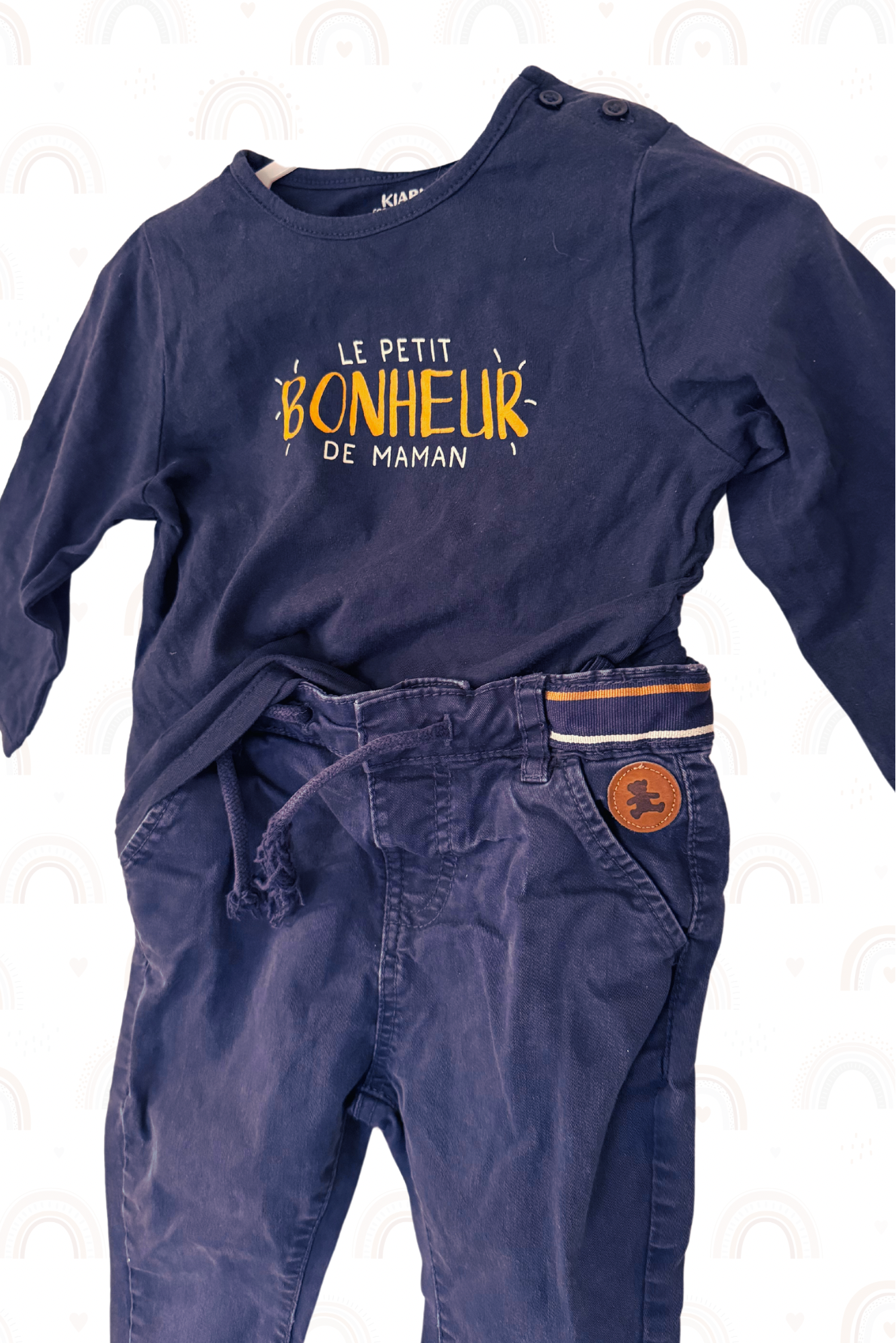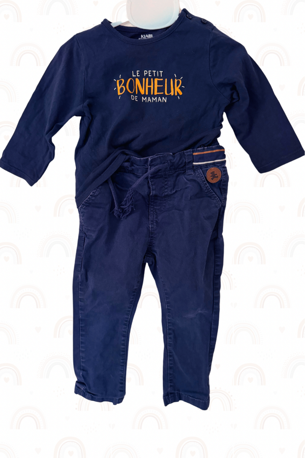 Marque : Sweat "Bout'Chou", Jean "Lulu Castagnette", Tshirt "Kiabi"