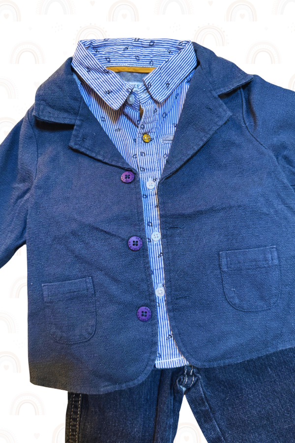 Marque : Veste "Tape à l'Oeil", Chemise "IKKS", Jean "Orchestra"