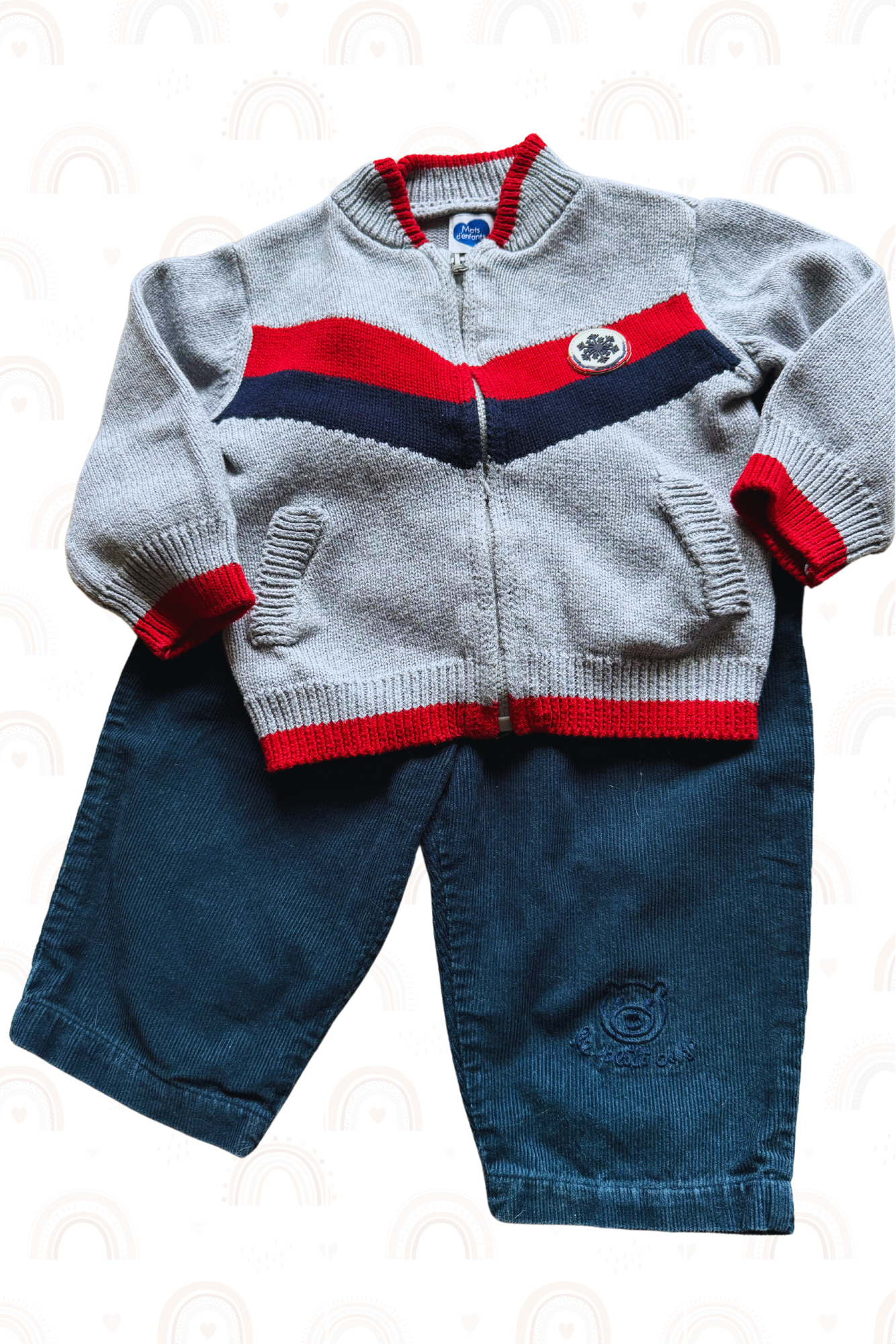 Marque : Gilet "Mots d'Enfants", Pantalon marque inconnue